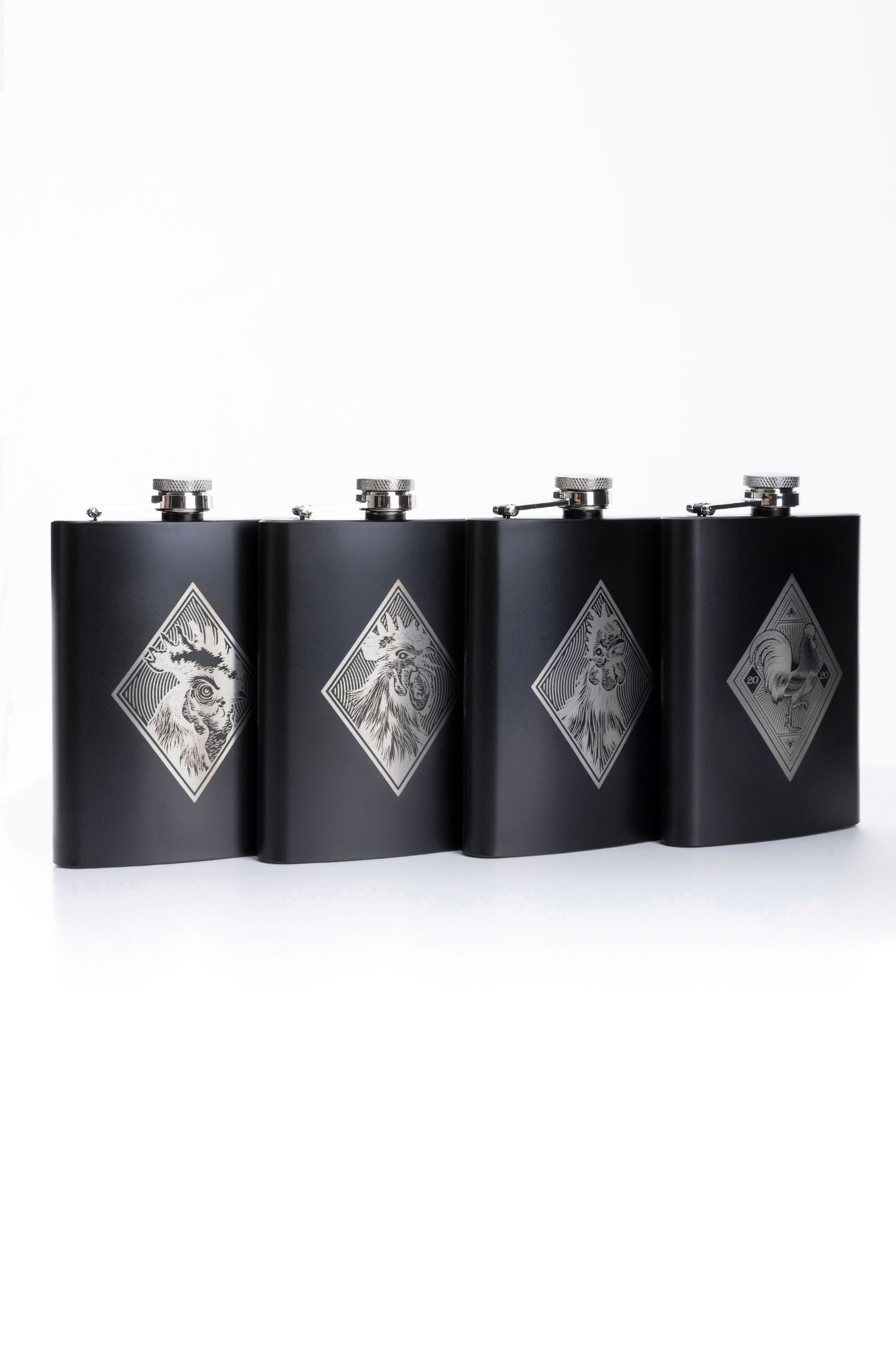 Licorera de acero inoxidable con embudo para llevar tu Ron Veinte a donde quieras
